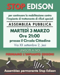La mobilitazione contro l’impianto continua: nonostante il diniego ufficiale da parte della Provincia di Ancona, è opportuno non abbassare la guardia soprattutto a fronte dei diversi ricorsi presentati da Edison!